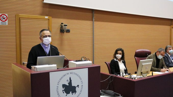 Oggi, dalle 13,15 Mons. Castellucci ha incontrato una rappresentanza dei sanitari nell’Aula Magna del Centro Didattico del Policlinico, insieme al Direttore Generale Claudio Vagnini, il Magnifico Rettore, Carlo Adolfo Porro, il Sindaco e Presidente della CTTS Gian Carlo Muzzarelli in Aula Magna. L’evento sarà trasmesso live anche a Baggiovara in Sala Vecchiati. All’evento era presente anche Maria Paola Lumetti, Presidente del Comitato Consultivo Misto aziendale in rappresentanza delle Associazioni di Volontariato operanti in Azienda. L’incontro è stato moderato da Alessandra Ferretti, del Servizio comunicazione aziendale.