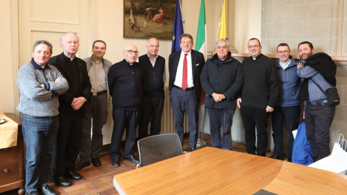“Condividiamo il sentimento del bene comune e continueremo a lavorare insieme per perseguirlo. Grazie alla Chiesa modenese per l’impegno e il lavoro costante che porta avanti”. Il sindaco Gian Carlo Muzzarelli ha introdotto così il tradizionale incontro per lo scambio degli auguri natalizi con una rappresentanza dei sacerdoti modenesi, guidati dal vicario generale e arciprete del Duomo don Giuliano Gazzetti, che si è svolto in Municipio, nella mattinata di oggi, mercoledì 30 novembre.