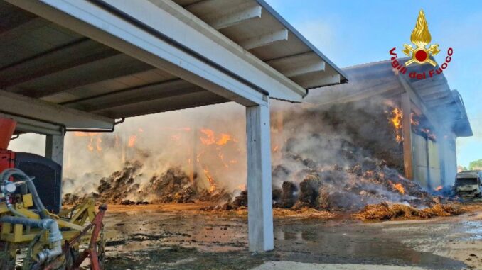 Continua ininterrotta l’opera dei Vigili del Fuoco di Modena che dalle prime ore dell’alba di ieri sono impegnati per domare il vasto incendio divampato all’interno di un fienile dell’azienda agricola Fratelli Chiletti di Albareto. Ad essere coinvolti i due capannoni del caseificio all’interno dei quali erano accatastate 10mila rotoballe di paglia, fieno ed erba medica, fortunatamente in salvo gli animali e le attrezzature. Tempestivo l’arrivo dei V.F., presenti con tre squadre provenienti dalla Centrale e dai Distaccamenti di San Felice e Carpi con l’impiego delle autobotti per domare il rogo ed evitarne la propagazione. Complesse e lunghe le operazioni di spegnimento, ancora in corso, che si protrarranno ancora a causa del numero elevato di rotoballe stoccate nel fienile.