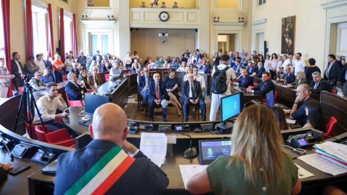 La seduta di insediamento del Consiglio di lunedì 1 luglio si è infatti aperta con la verifica delle condizioni di eleggibilità dei 32 consiglieri scelti dai cittadini nelle elezioni amministrative dell’8 e 9 giugno. La convalida delle nomine e la surroga sono state votate all’unanimità. Questa fase della seduta è stata presieduta da Grazia Baracchi in qualità di consigliera anziana (dopo la nomina in giunta di Venturelli e Bortolamasi), termine che indica il consigliere che ha raggiunto la maggiore cifra individuale (voto di lista più voti di preferenza personali).