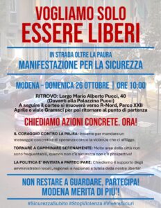 Il comitato Modena Merita di Più! invita la cittadinanza a prender parte Domenica, 26 Ottobre dalle ore 10 all’incontro “Vogliamo solo ESSERE LIBERI”.
