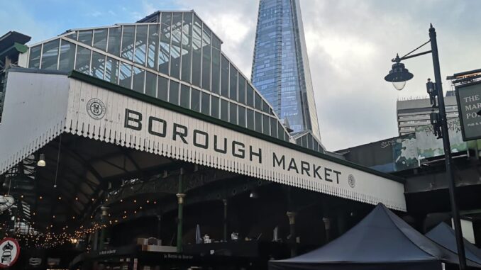 Frequentato ogni anno da circa 30milioni di persone tra turisti e abitanti del distretto, il Borough Market propone prodotti tipici e street food nei suoi oltre 120 banchi, con una grande varietà di prodotti gastronomici provenienti da tutto il mondo.