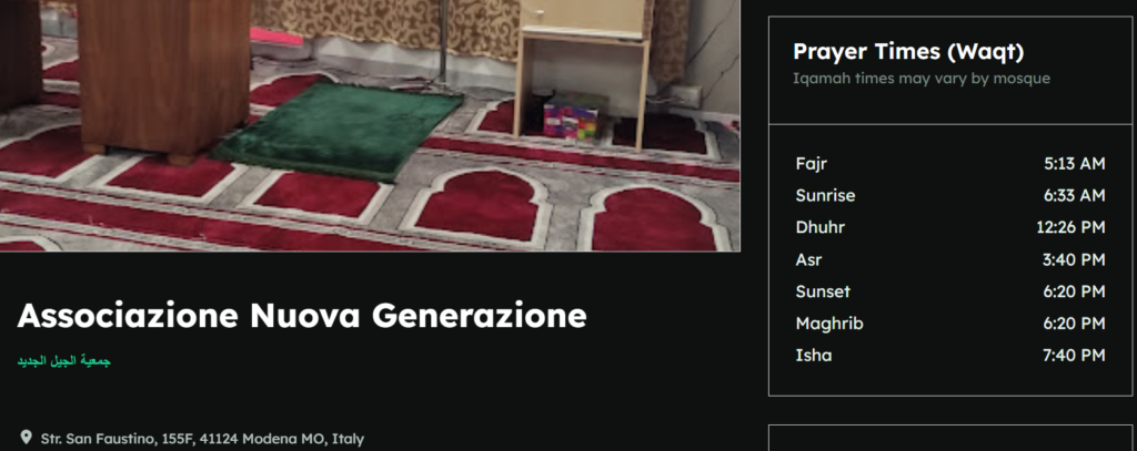 Non un’associazione culturale ma una moschea: sembra essere questo quello che accade nei locali del complesso Windsor Park di Modena sede dell’associazione Nuova Generazione. La presenza di un andirivieni di persone e di sale piene di gente raccolta in preghiera è stata segnalato da diversi cittadini che frequentano la zona.