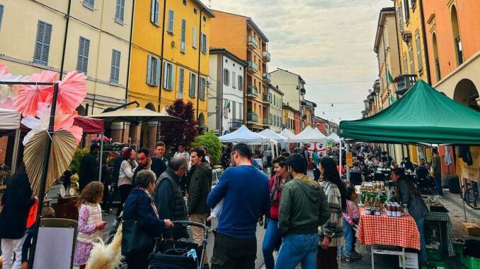Domenica 19 aprile si apre con Montmartre in Piazza Aldo Moro, arte in strada con esposizione di opere contemporanee e realizzazioni dal vivo a cura del Gruppo Amici dell’Arte del Centro Culturale Almo. In Corso Martiri 230, zona via Cappi, si svolge la diretta TV di Ci vediamo in piazza, il programma di Andrea Barbi trasmesso su TRC Modena. Alle 11.00, zona Museo Civico, lo spettacolo di burattini La principessa Primavera e la strega Gennarina a cura dell’Associazione Bugs Bunny ODV. Dalle 12.00 alle 17.00, in Corso Martiri lato Bologna, va in scena il Carnevale brasiliano con carri allegorici, pranzo al tavolo, musica, drinks e churrasco brasiliano a cura di Caffetteria Borghi e Royal Cafè Pasticceria in collaborazione con Brazil Grill: i bambini sono invitati a partecipare in maschera per il gettito dai carri di doni omaggio. Dalle 16.00 alle 18.00, in via Circondaria Nord 116, apertura straordinaria dell’Acetaia Comunale con visite guidate alle 16.15 e alle 17.15 e degustazione dell’Aceto Balsamico Tradizionale di Modena DOP a cura dei maestri assaggiatori della Consorteria di Spilamberto.