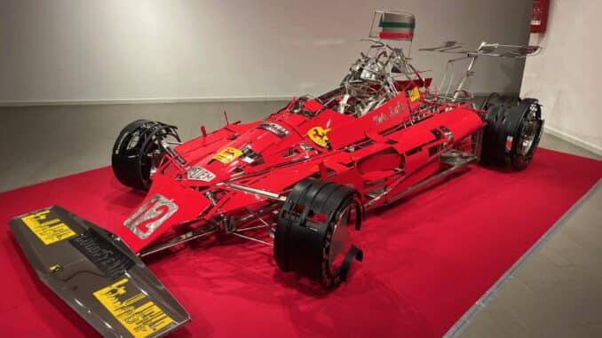 L’opera riproduce a grandezza naturale la monoposto con cui Niki Lauda vinse il Mondiale Piloti nel 1975, ed è stata interamente realizzata con materiali di recupero. La scultura si potrà visitare fino all’11 maggio – ad ingresso libero – negli orari di apertura al pubblico della biblioteca (lunedì 14.30-19, da martedì a sabato 9-19). L’opera è stata ‘svelata’ sabato pomeriggio nell’ambito di un evento dedicato a Pietro Corradini, ex meccanico Ferrari scomparso lo scorso anno, e organizzato dalla FAI Sport, società sportiva paralimpica di Udine legata al Comune di Maranello da una lunga amicizia che vede i due enti collaborare allo sviluppo di iniziative finalizzate all’inclusione degli atleti disabili attraverso l’attività sportiva.
