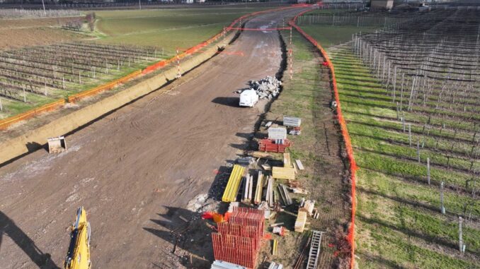 Oltre a gran parte dell’asse viario, sono già stati realizzati un sottopasso pedonale, due sottopassi agricoli, due attraversamenti del rio Scuro e 12 scatolari per la trasparenza idraulica. I rilevati in terra che costituiscono gran parte del tracciato stradale sono in buona parte completati e nei prossimi mesi inizierà la fase di realizzazione del pacchetto degli asfalti, oltre alle opere idrauliche, e all’installazione delle barriere guard rail e antirumore.