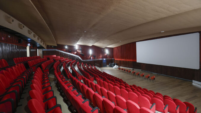 Questa è senz’altro una sala predisposta per la visione. Oltre 400 poltrone comode. Lo schermo è stato ingrandito, e anche di molto. Il proiettore è in 4k, per dire che abbiamo fatto notevoli migliorie dal punto di vista tecnologico. L’audio è un dolby surround nuovo di ultima generazione, insomma abbiamo posto tutte le condizioni per una visione di grande qualità. Dal punto di vista dell’impiantistica, non abbiamo assolutamente lesinato.
