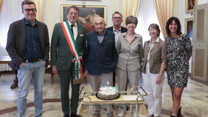 Festa a sorpresa in Municipio, con torta di compleanno, per Beppe Zagaglia che oggi, giovedì 5 ottobre, ha compiuto 90 anni. Zagaglia, “fotografo dilettante” come lui stesso si definisce sui biglietti da visita, è stato accolto nella sala di Rappresentanza del Palazzo comunale di prima mattina dal sindaco Gian Carlo Muzzarelli insieme al vicesindaco Gianpietro Cavazza e all’assessore alla Cultura Andrea Bortolamasi.