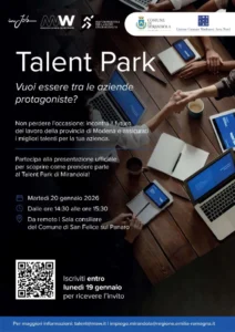 E’ in programma il prossimo 5 marzo al palazzetto Simoncelli di Mirandola “Talent Park”, un contest in cui aziende del territorio e ragazzi si incontrano per favorire l’accesso proprio dei giovani al mondo del lavoro.