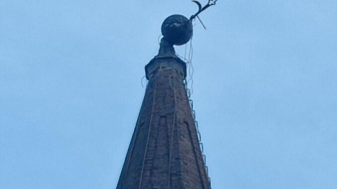 La grande croce posizionata sul campanile della chiesa di Sant’Adriano Papa a Spilamberto si è, ieri pomeriggio, pericolosamente piegata su un lato. L’allarme è scattato intorno alle 16, ancora da stabilire le cause di quanto accaduto.