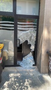La vetrina in frantumi dopo l’ennesimo colpo
