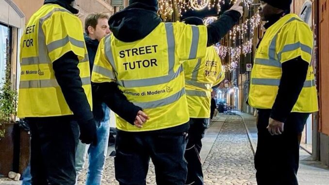 Prevenire episodi di criminalità e sensibilizzare i gestori dei locali a rispettare le norme in materia di somministrazione di alcolici e decoro urbano. Con questo obiettivo torna in centro storico da fine mese, con particolare attenzione al periodo delle feste natalizie, il servizio di Street tutor nelle zone interessate dalla movida. Gli operatori, coordinati dalla Polizia locale e riconoscibili dal giubbino fluorescente che riporta la scritta “Street tutor. Comune di Modena”, hanno innanzitutto una funzione di prevenzione e la loro presenza intende contribuire a rendere più sicura la zona. Saranno in stretto contatto con le forze di Polizia che verranno attivate in caso di episodi come le risse avvenute nell’ultimo mese in via Gallucci. Il costo del progetto è di 50mila euro.