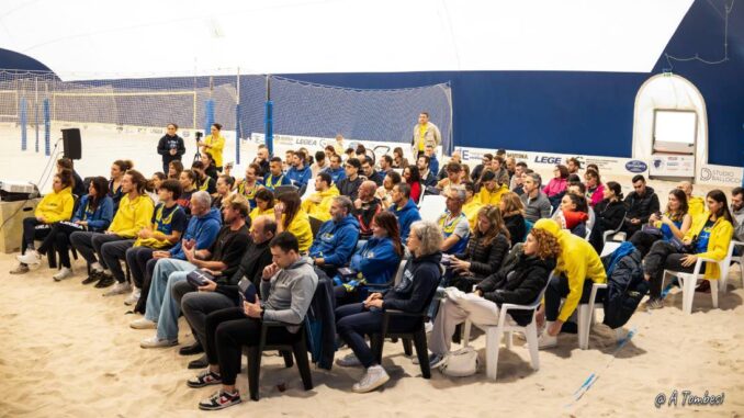 Grande entusiasmo e successo alla presentazione ufficiale della nuova stagione agonistica della Mutina Beach Academy, pronta a vivere un’altra annata da protagonista nelle AIBVC Club Series 6.0. Oltre 80 “Mutiners” presenti presso la struttura di casa in un evento chiave e decisamente importante per svelare le nuove divise, dare il benvenuto ai partner e agli sponsor che sosterranno il progetto e illustrare le principali novità di un’edizione che si preannuncia carica di nuove sfide da affrontare. Ospiti d’eccezione il direttore generale di Modena Volley Andrea Sartoretti e l’ex pallavolista Marco Solustri. Entrambi hanno partecipato alla presentazione, offrendo il loro prezioso contributo e dispensando consigli per preparare al meglio gli atleti in vista degli imminenti impegni agonistici.