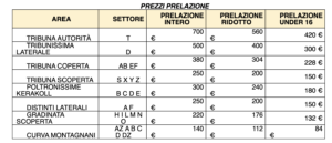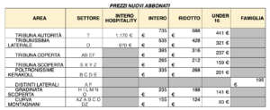Contemporaneamente, sui posti liberi, sarà possibile, per i “nuovi abbonati”, acquistare fin da subito un nuovo abbonamento, con listino prezzi dedicato (PREZZI NUOVI ABBONATI).