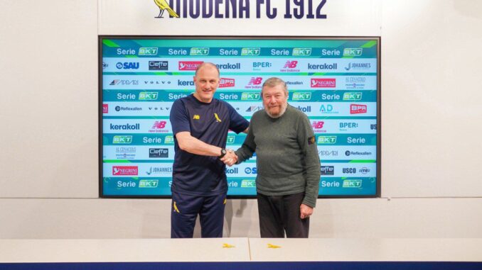 “Pierpaolo Bisoli è ufficialmente il 104° allenatore della storia del Modena, il 3° da quando la famiglia Rivetti è proprietaria del club. Il tecnico di Porretta Terme, 57 anni, risolte le pratiche burocratiche con F.C. Sudtirol, ha firmato il contratto che lo legherà ai gialloblù sino al 30 giugno 2025. Nel pomeriggio ha diretto la prima seduta al campo Zelocchi dello stadio Alberto Braglia. Il presidente Carlo Rivetti e tutta la Società danno a Bisoli il benvenuto nella famiglia gialloblù, augurandogli un buon lavoro“.
