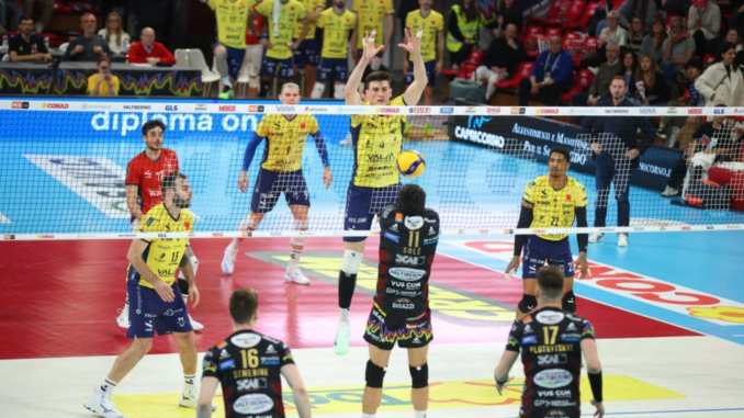“Nel primo set in particolare loro hanno giocato da Perugia, sia in battuta che in ricezione – ha ammesso a fine gara il coach gialloblu Alberto Giuliani – noi abbiamo provato a rimanere attaccati però ci abbiam capito poco sia a muro che in battuta. Poi, attraverso i cambi a cui la nostra squadra è abituata, siamo riusciti a fare qualcosa di meglio, ma anche questa volta non è bastato. Fa tutto parte dell’esperienza che questi ragazzi stanno maturando o devono maturare”. Giuliani poi si sofferma sul gironcino dei play off quinto posto, che i gialloblu ora dovranno affrontare. “Credo che abbiamo le possibilità di giocarlo da protagonisti – dice – abbiamo visto che siamo cresciuti, anche se sappiamo che affronteremo squadre forti che ci sono arrivate davanti in classifica. Credo comunque che abbiamo il potenziale per poterlo giocare bene. La qualità morale ce la facciamo venire se non ce l’abbiamo. Un’idea precisa ce la faremo settimana per settimana come al solito”.