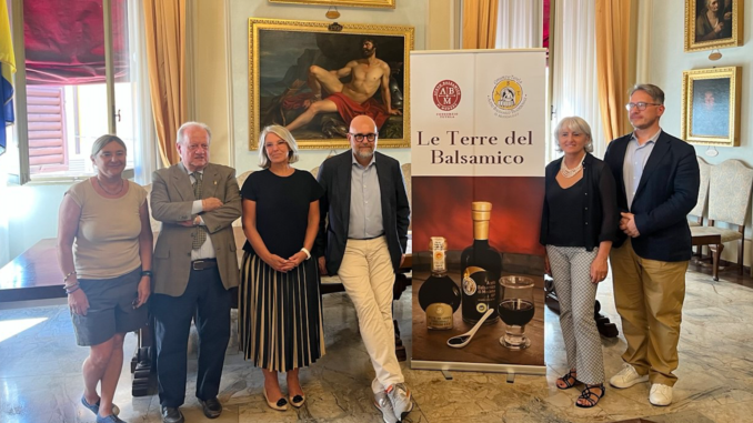 Si scaldano i motori per l’edizione 2025 di Acetaie Aperte, l’evento organizzato da “Le Terre del Balsamico”, Consorzio di secondo grado di cui fanno parte il Consorzio Tutela Aceto Balsamico di Modena e il Consorzio Tutela Aceto Balsamico Tradizionale di Modena, presentato questa mattina nella Sala di Rappresentanza del Comune di Modena nel corso della conferenza stampa che ha visto protagonisti il Sindaco di Modena Massimo Mezzetti, la vice presidente del Consorzio Le Terre del Balsamico Mariangela Grosoli, la vice presidente del Consorzio Tutela Aceto Balsamico di Modena Sabrina Federzoni, il consigliere del Consorzio Tutela Aceto Balsamico Tradizionale di Modena Michel Montanari.