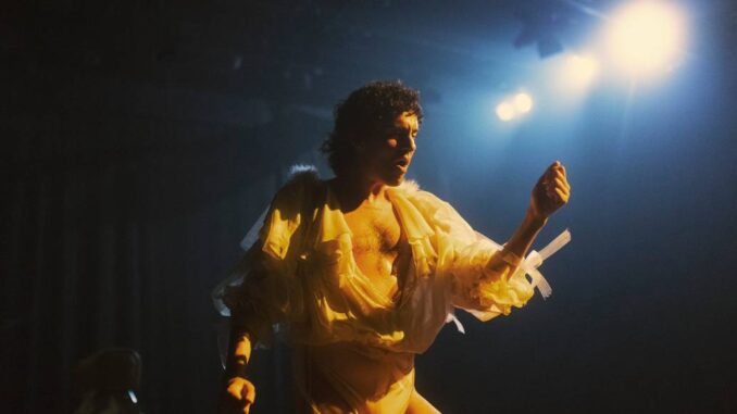 Ambientata in un bar dorato, luogo sospeso tra sogno e realtà, la performance prende vita attraverso un linguaggio che unisce corpo, parola e musica. A partire dall’immaginario celeste legato alla figura dell’angelo, Cortés solleva diversi interrogativi: che tipo di mascolinità ci influenza? Quali identità vengono percepite come fragili, mostruose o inaccettabili? E quali ferite invisibili segnano i corpi che si rivelano nell’intimità della notte?
