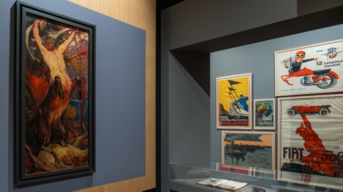 Cuore pulsante dell’esposizione è la figura del centauro, protagonista del dipinto “Centauro che uccide un cervo” di Jules Van Biesbroeck (1918 circa). L’opera, che trae ispirazione da una lirica di D’Annunzio della raccolta “Alcyone” (1903), raffigura un centauro sollevare in trionfo le corna di un cervo appena catturato in un rimando diretto alla doppia natura dell’essere umano. Il centauro, nel suo essere un ibrido con corpo a metà tra un cavallo e un uomo, simboleggia il costante conflitto tra l’istintualità e il vitalismo animale e la razionalità che tende a regolare le pulsioni.