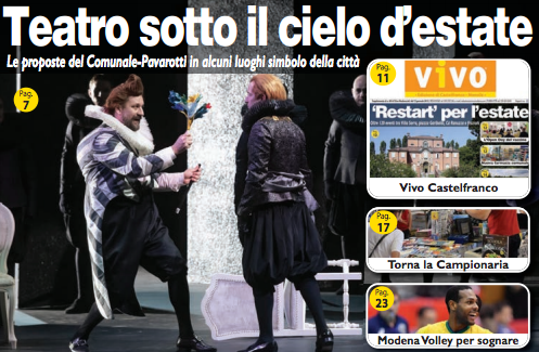- Tanti eventi estivi per quanto riguarda l’inserto di Vivo Castelfranco, da quelli di “Restart”, la rassegna organizzata dal Comune di Castelfranco, a quelli dei comuni di San Cesario e Nonantola.