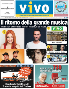 E’ già online, scaricabile in formato PDF e comodamente sfogliabile da casa vostra, ma anche in distribuzione nei classici dispenser gialli, il nuovo numero di Vivo Modena. Questa settimana, all’interno, l’inserto su Sassuolo e dintorni.