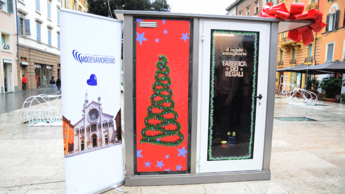 E’ stata inaugurata questa mattina, venerdì 20 dicembre, in piazza Mazzini, nell’ambito delle iniziative natalizie di Modenamoremio, l’installazione intitolata “Il Regalo Immaginario”, costituita da una cabina interattiva che, utilizzando I.A. e tecnologia avanzata, consentirà ai visitatori un’esperienza immersiva, un momento originale e divertente, nel quale, attraverso l’utilizzo di un totem di interazione multimediale, le persone potranno esplorare il concetto di ‘regalo immaginato’ e creare un proprio messaggio digitale, con la propria immagine e con l’intervento della fantasia, e inviarlo a una propria persona cara, ovviamente a carattere natalizio.