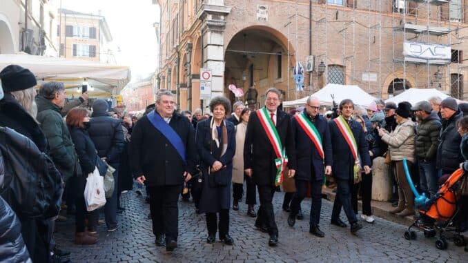 In mattinata Modena ha infatti riproposto l’antichissima tradizione delle autorità cittadine, civili e militari, che, in corteo raggiungono il Duomo, partendo dal Palazzo comunale, portando come offerta i due ceri votivi e l’olio per la lampada che nella cripta della Cattedrale arde perennemente davanti al sepolcro del Santo Vescovo. Il sindaco Gian Carlo Muzzarelli ha partecipato alla celebrazione religiosa in Duomo dove appunto si è rinnovata la tradizione dei doni offerti dal Comune nella messa pontificale durante la quale l’Arcivescovo Erio Castellucci ha impartito la benedizione alla città con la reliquia del braccio di San Geminiano.